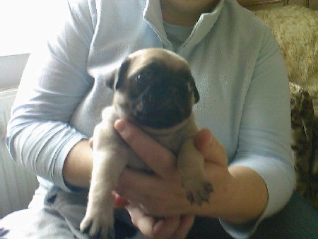 Am Wochenende darauf fuhren mein Freund und ich also nach Sachsen um den kleinen Mops zu begutachten und uns bei der Züchterin vorzustellen. Als ich dann das kleine Möpschen vor mir hatte war es um mich geschehen.